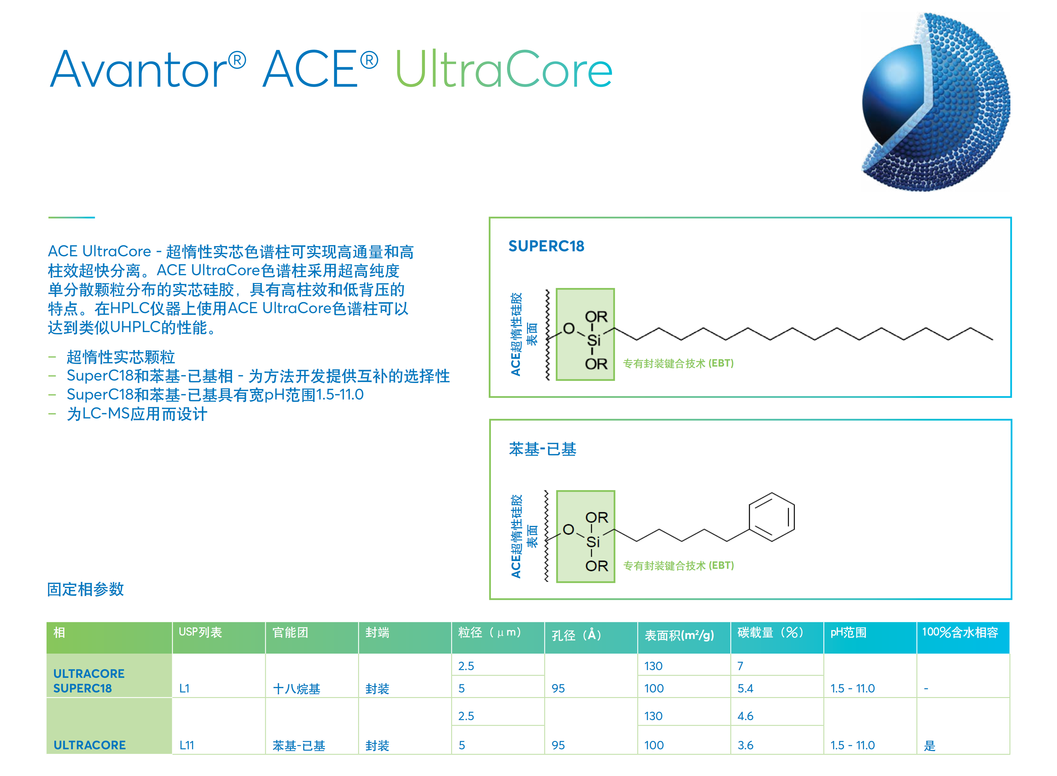 UltraCore 实心核色谱柱